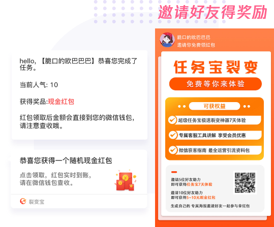 通过任务宝、转发宝等高 裂变工具帮助您迅速涨粉